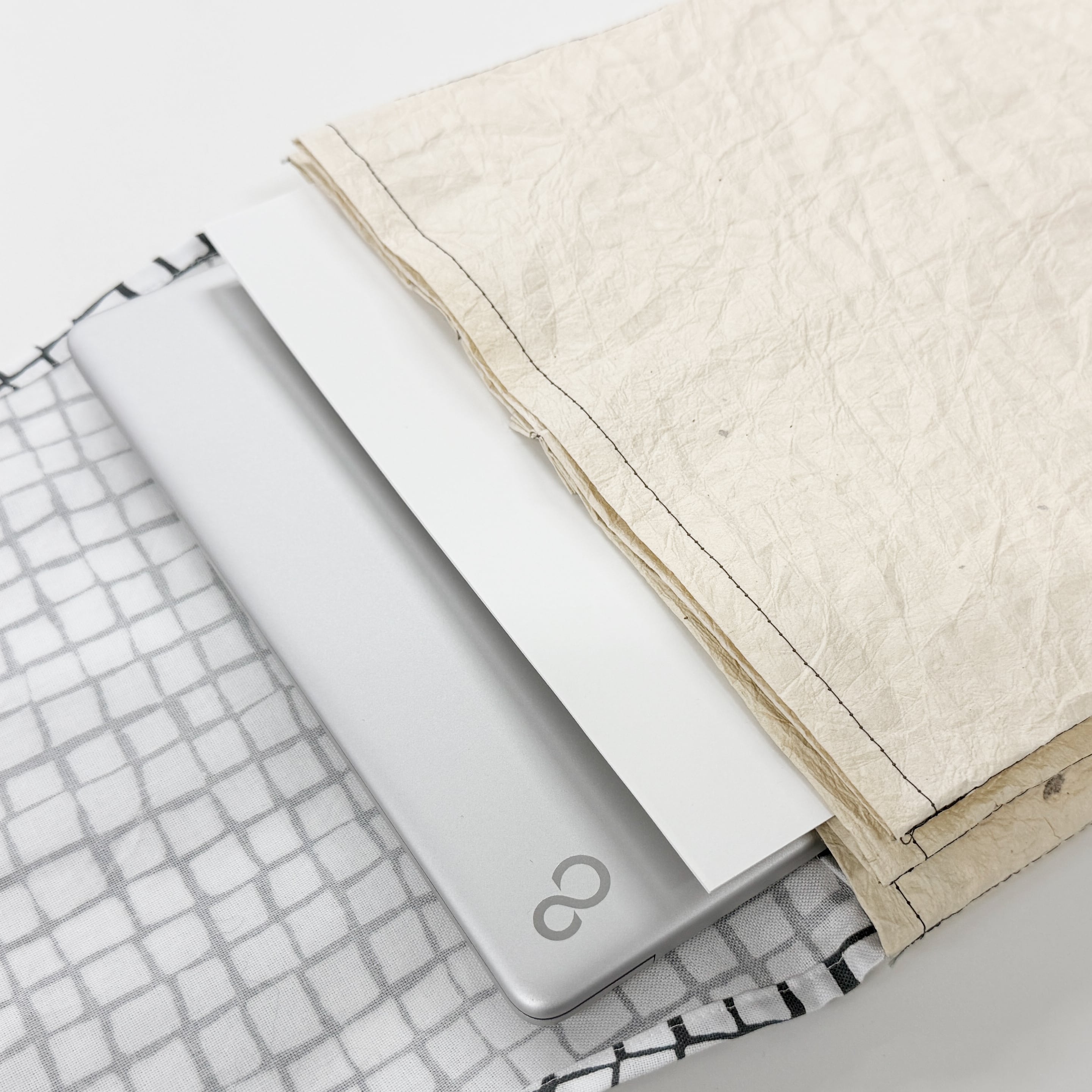 軽くて丈夫な和紙をノートパソコン用のケースに仕立てました。