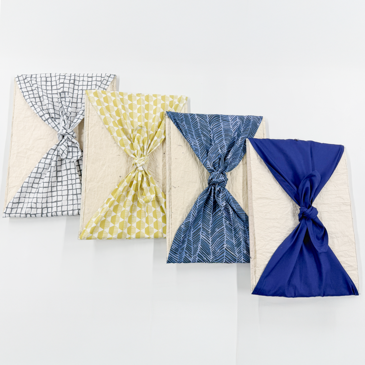 両端の布は風呂敷のように結んで使えるほか、結ばずにスナップボタンで留めることも可能です。